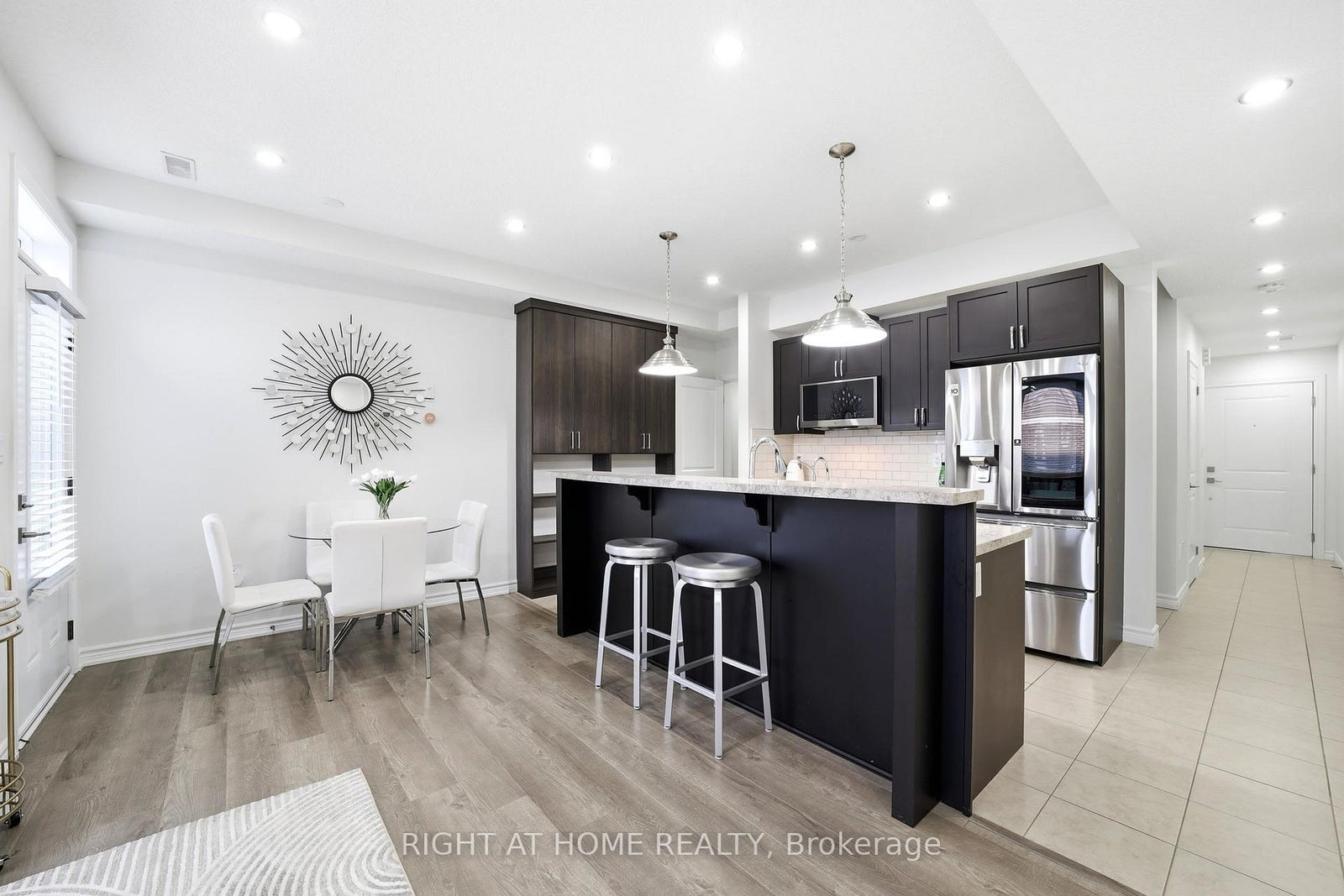 Welcome to this beautifully maintained 3 Bedroom +1 Den CondoTownhouse with 2.5 Bath, in the heart of Milton at 445 Ontario St S. Offering approximately 1600 sqft of thoughtfully designed living space, this home seamlessly blends modern finishes with a functional layout ideal for families and professionals alike. The bright open-concept main floor is enhanced with recessed pot lights and effortless flow between the living and dining areas, creating the perfect setting for both entertaining and everyday living. The upgraded kitchen features stainless steel appliances, a reverse osmosis filtration system, and custom wall storage that maximizes style and practicality. Second floor has the convenience of a laundry room to make daily routines easy, while an additional family room offers flexible space for relaxing or gathering. The third floor hosts three well-appointed bedrooms, providing comfortable and private retreats for the whole family. A versatile ground-level den provides the ideal setup for a home office or extra storage. Enjoy outdoor living with a private balcony on 3 separate floors, perfect for morning coffee or evening unwinding. Ideally located just minutes from the Milton GO Station and surrounded by abundant shopping, restaurants, and everyday amenities. This move-in-ready townhouse delivers comfort, versatility, and exceptional convenience in one of Milton's most connected communities.
